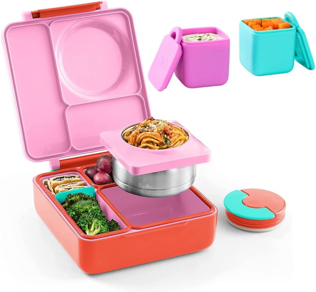 OmieBox Insulated Bento Lunch Set with Thermos & Leakproof Dip Containers - Pink Fluff