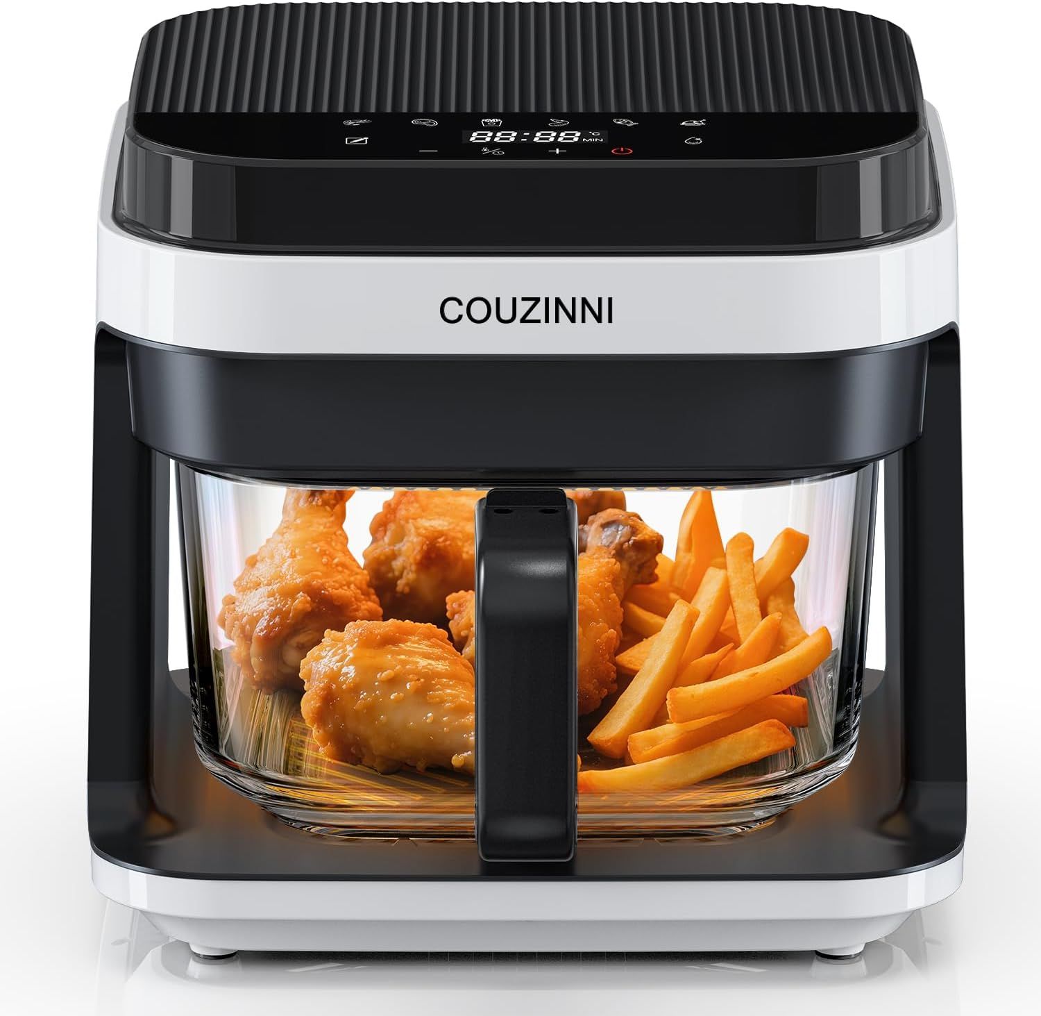 COUZINNI 6.5L Air Fryer 1200W with 8 Preset Modes and Transparent Bowl, Perfect for Shrimp, Steak, Fries, and More, White
